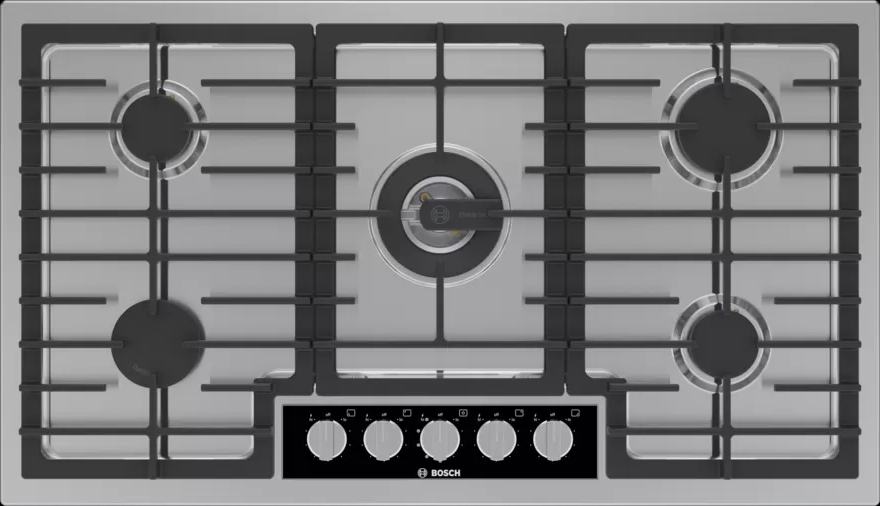 The Bosch Benchmark® Series 36" stainless steel gas cooktop with digital display and adjustable FlameSelect®. With a special enameling process, the heavy-duty continuous surface grates can be easily and quickly cleaned in the dishwasher.Read More